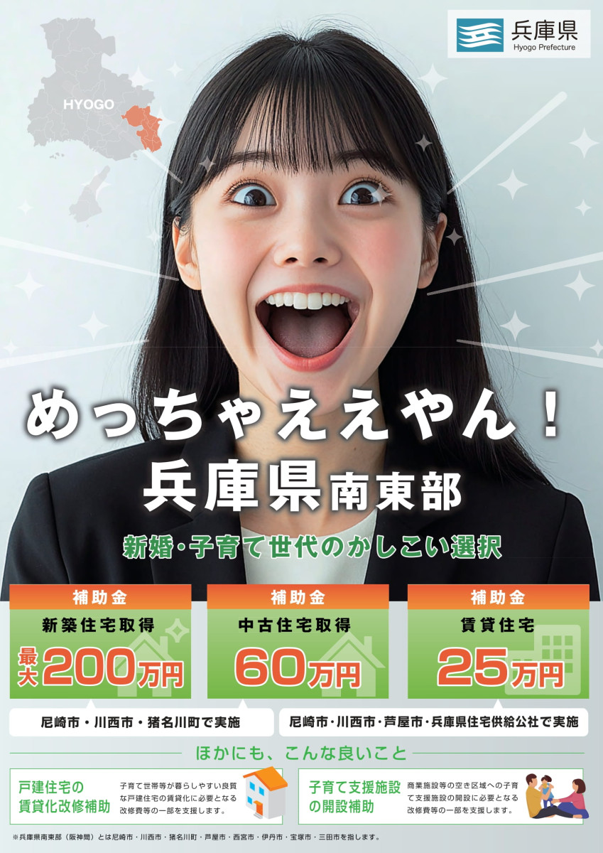 兵庫県内の自治体でも、子育て世帯に対する住宅購入・賃貸の支援制度があります。今回は兵庫県南東部の自治体の住宅支援を紹介します。詳細は各自治体のHPをご覧ください。