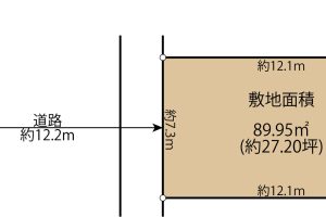 - 南西側幅員約12.2mに約7.3m接道