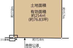 - 南側幅員約6.0mに約15.4m接道